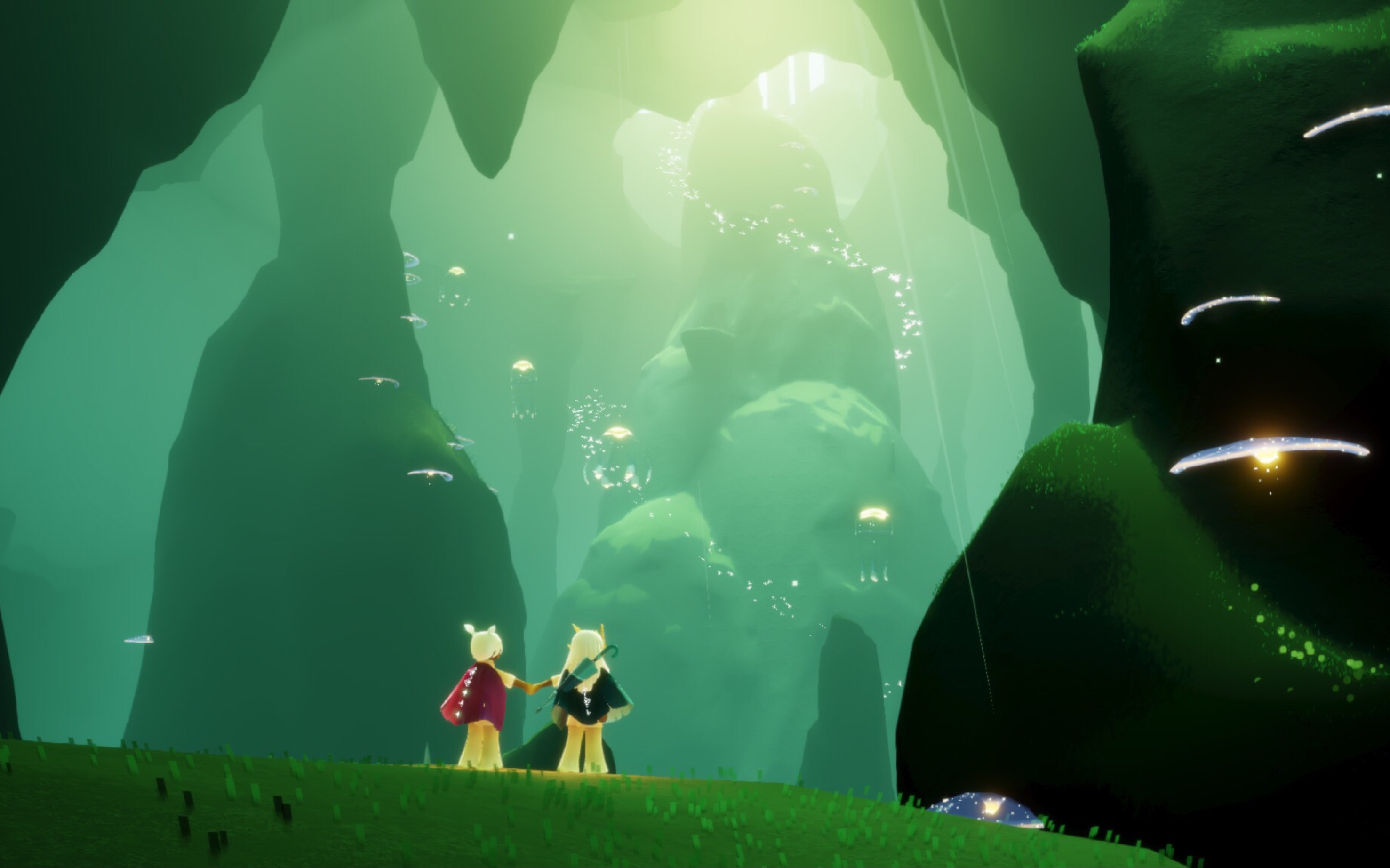 第三阶段:资源积累与兑换策略,雨林斗篷兑换成本较高,例如白色斗篷需50爱心、6普通蜡烛及4升华蜡烛,而绿色斗篷需36普通蜡烛。推荐通过以下方式加速资源获取: 1. 烛火收集路线:优先选择雨林老奶奶树屋、云野幽光山洞等高效挂机点,结合音乐商店的固定烛火补充; 2. 季节活动参与:利用限时活动兑换爱心或蜡烛礼包,减少日常肝度; 3. 社交协作:与好友互送心火,或组队完成每日任务提升蜡烛产出。此外,解锁矮人面具(需20爱心)可缩小角色体积,便于穿越狭窄地形寻找隐藏先祖
