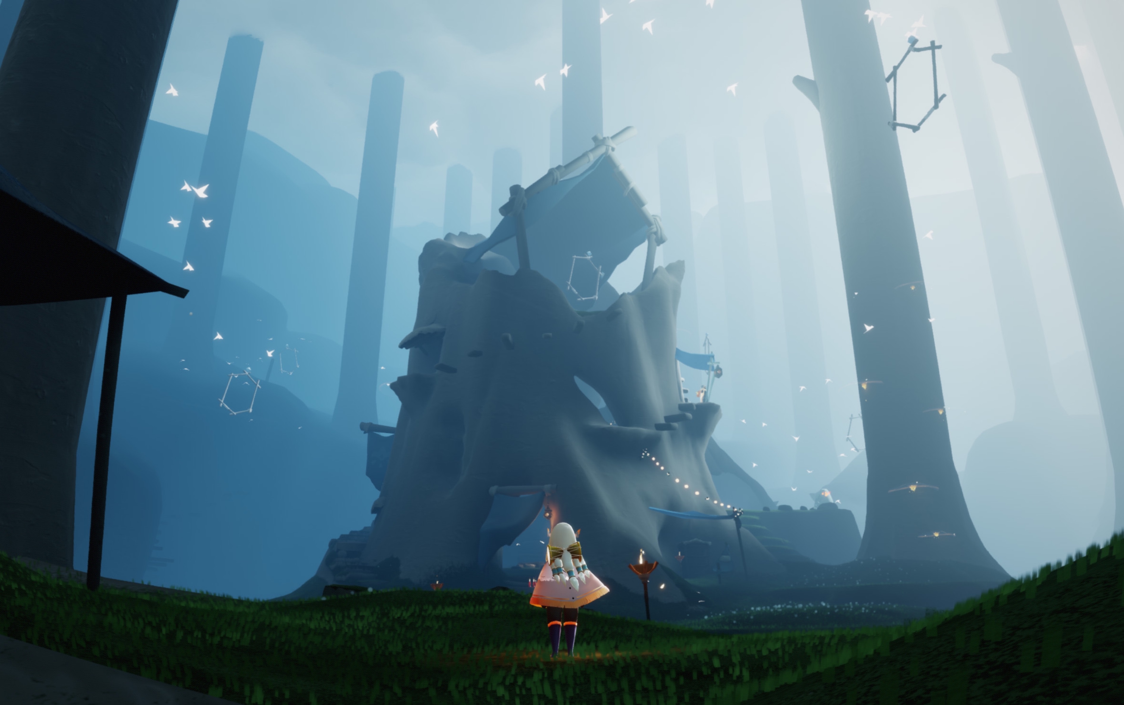 第四阶段:进阶技巧与风险规避,夜间探索能提高雨林先祖出现概率,但需警惕冥龙袭击。建议携带充能道具如烟花杖应对突发战斗。若在伊甸之眼阶段失败,可通过石门缝隙直飞快速返回献祭点,节省时间成本。兑换时注意先祖节点解锁顺序,优先获取斗篷而非装饰品,避免资源浪费。例如灵语者先祖的斗篷节点位于兑换树顶端,需先解锁前置动作。