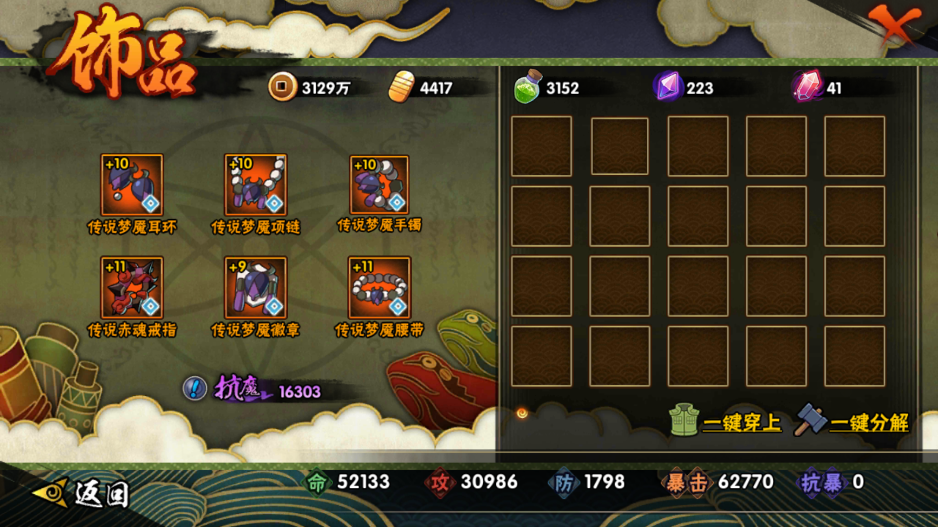 在火影忍者手游中,祈愿饰品作为130级阶段的顶级装备,不仅是战力体系的核心构成,更是玩家从普通玩家向高阶玩家跨越的关键门槛。这类饰品以橙色品质为主,提供攻击、暴击、防御等核心属性加成,部分稀有款甚至附带特殊技能效果。其获取过程需要系统性规划,涉及等级、抗魔值、活动参与和资源积累等多个维度。